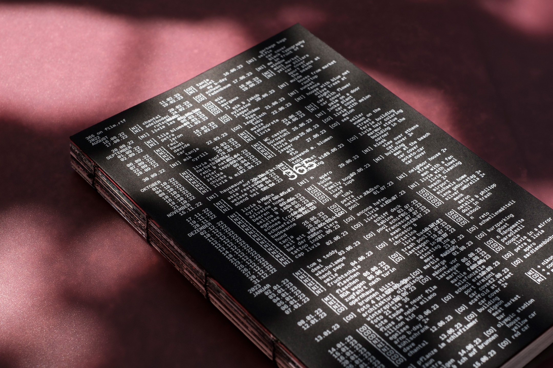 Um aus dem Kopf zu kommen und der Intuition mehr Raum zu geben stellte ich mir die Aufgabe, ein Jahr lang, jeden Tag ein Foto zu machen. Die daraus entstandenen Bilder wurden in zeitlich chronologischer Abfolge in Buchform festgehalten. Die Fotografien sind in unterschiedlichen Grössen abgebildet.