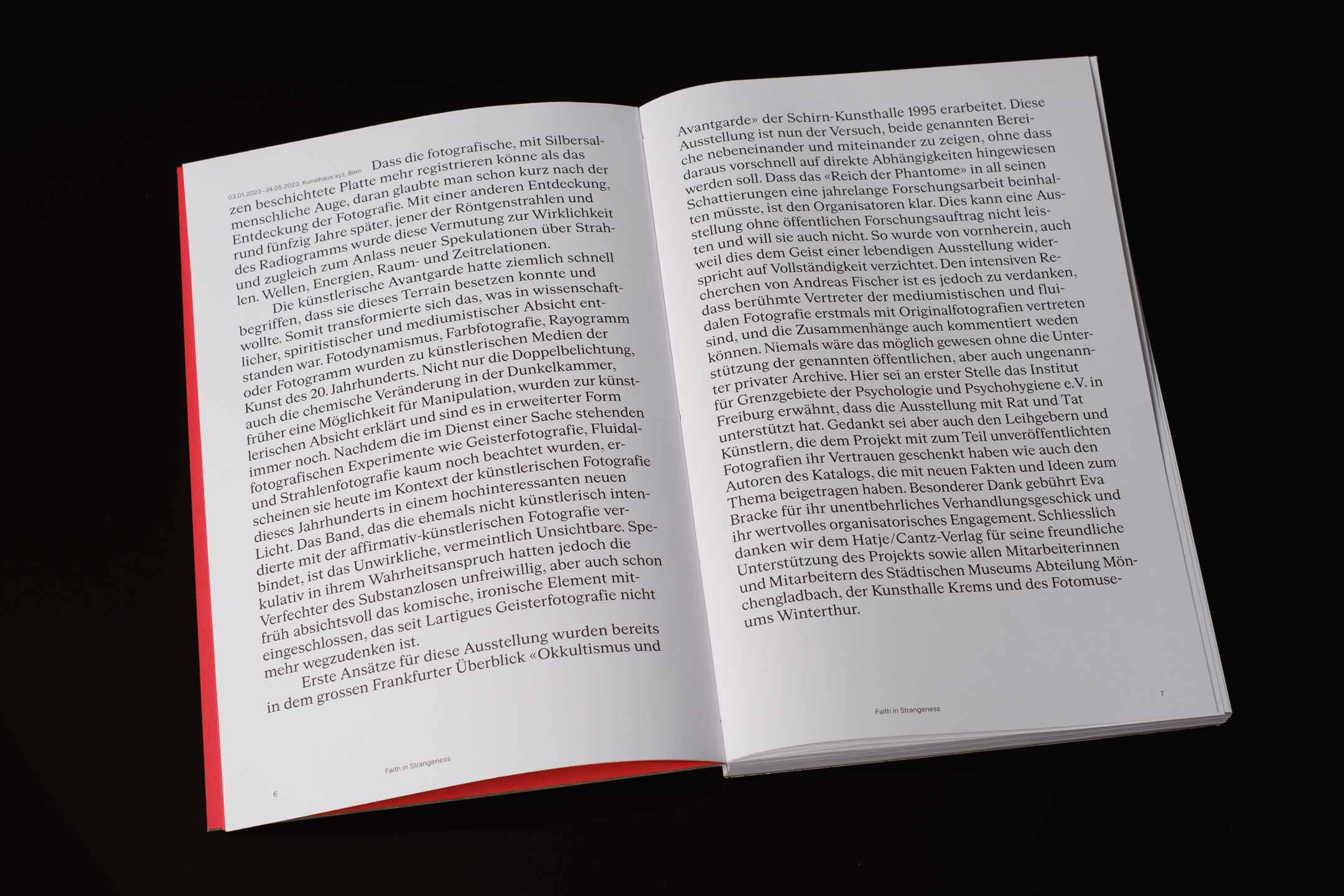 «Faith in Strangeness» ist ein Katalog & eine Website zu einer fiktiven Gruppenausstellung. Ausgehend von sieben vorgegebenen Büchern der Bibliothek Andreas Züst sind Texte & Bildmaterial neu kombiniert & in einen künstlerischen Kontext gestellt. Weiterführend gibt es ein digitales Archiv zu vergangenen Ausstellungen.