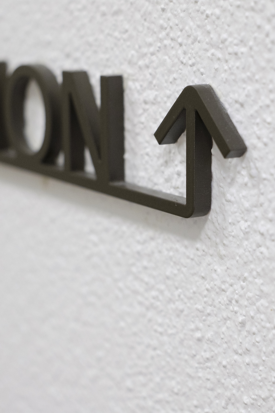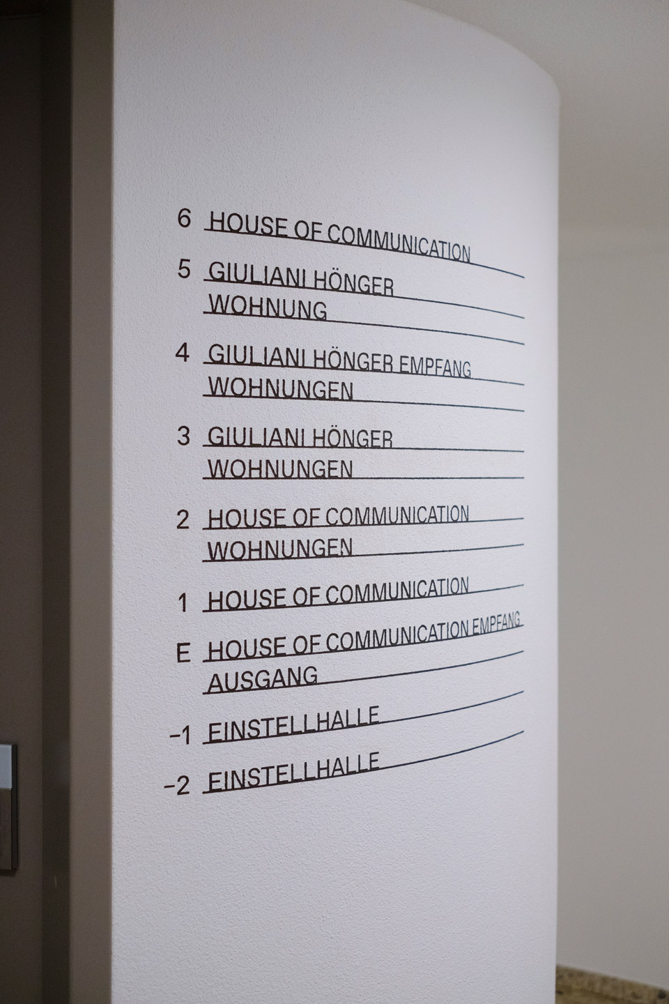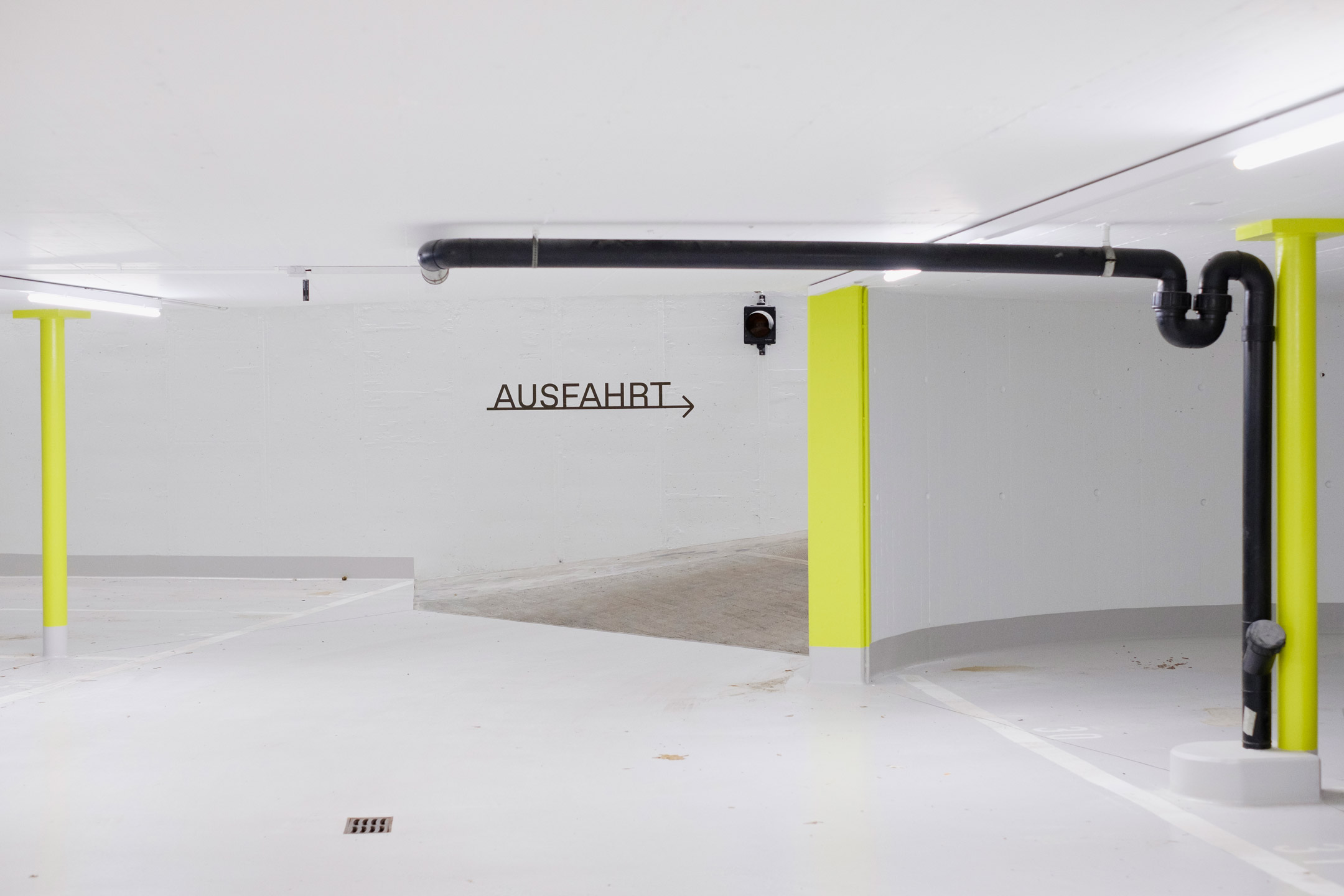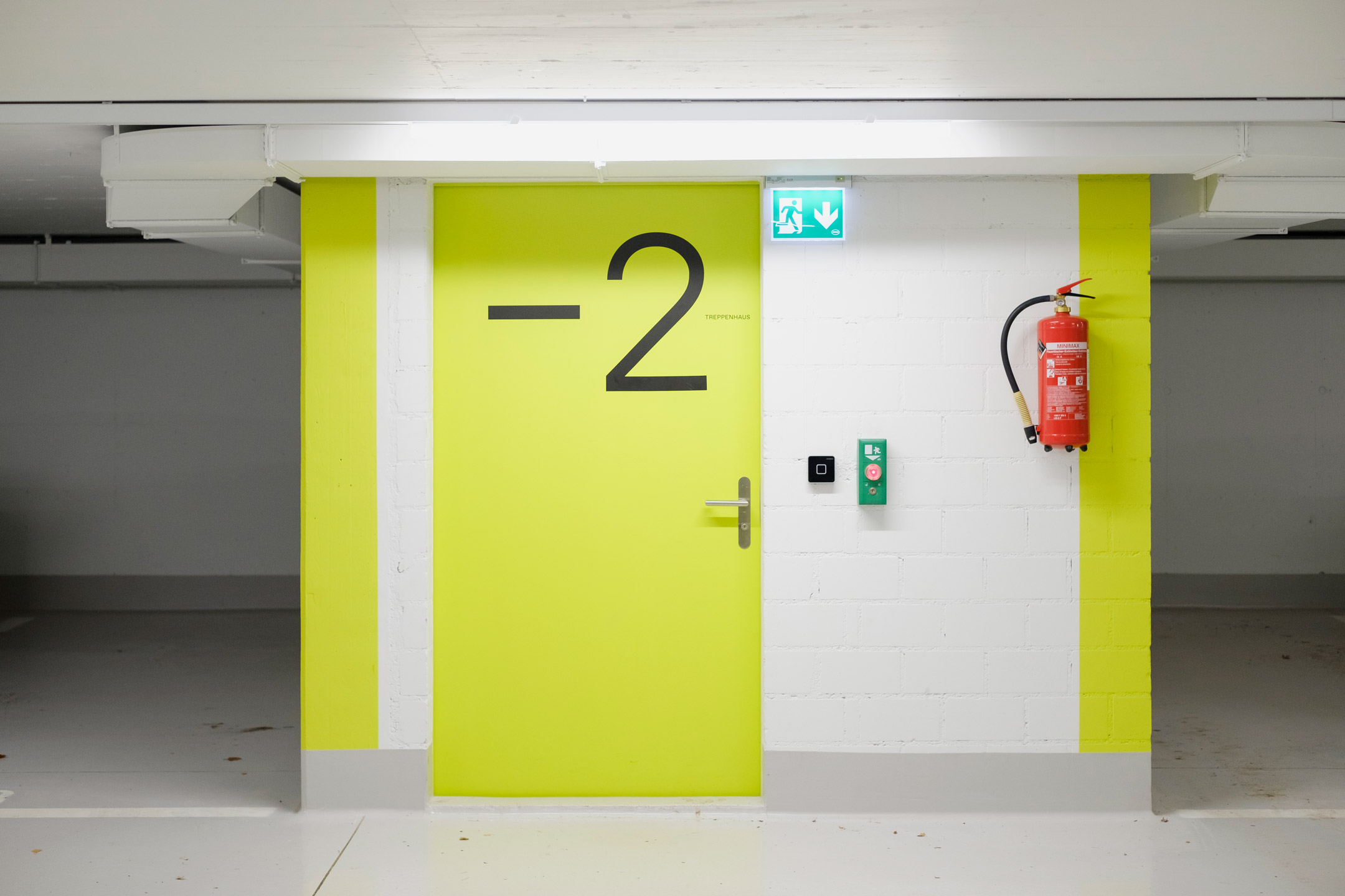 Das Linienelement unterstützt die Gliederung & ist aus den Notizblöcken der Bürowelt abgeleitet, wobei die Farben vom Bürogebäude übernommen sind. Die aus den Linien weiterführenden Wegführungen dienen der schnellen Orientierung.